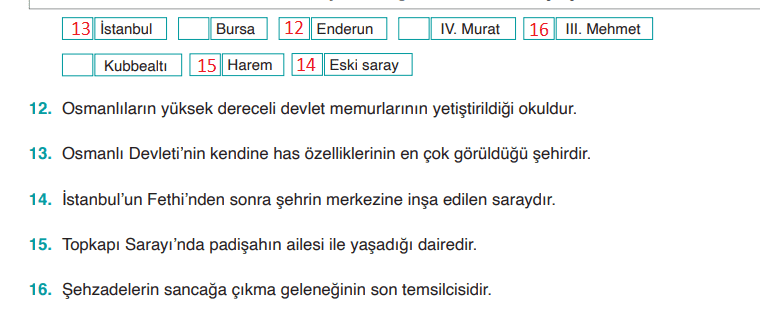12-16. sorularda verilen ifadeleri okuyarak doğru kavramlar ile eşleştiriniz