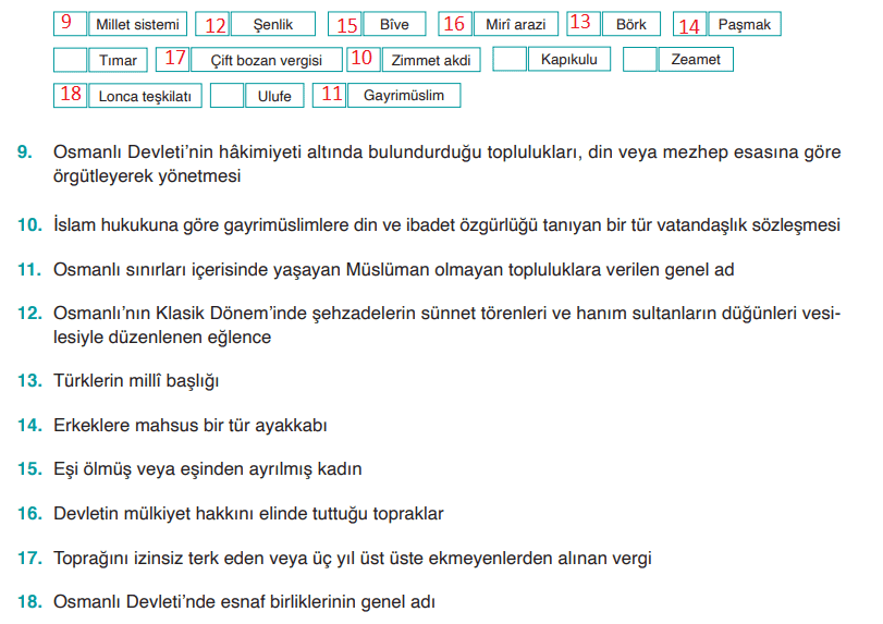 9-18. sorularda verilen ifadeleri okuyarak doğru kavramlar ile eşleştiriniz.