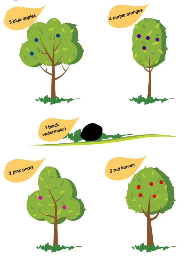 Assignment: Draw a fruit basket with the fruits you like. Show and say the fruits. Name them.