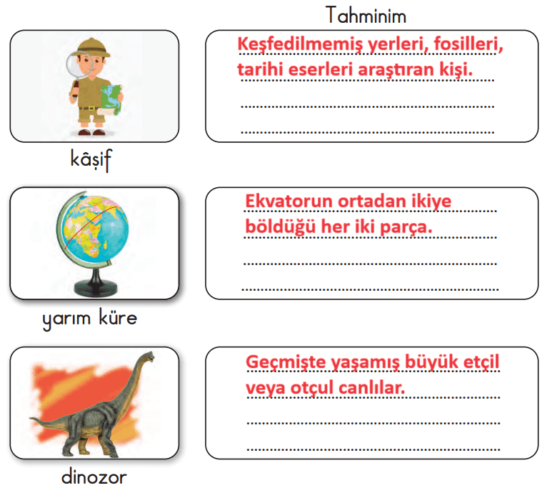 Görsellerden hareketle sözcüklerin anlamını tahmin edip sözlük anlamlarıyla eşleştiriniz.