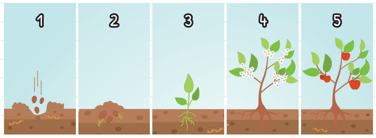 Görsellerde elma ağacının yaşam döngüsü verilmiştir. Aşağıdaki ifadelerin başına uygun görsellerin numaralarını yazınız.