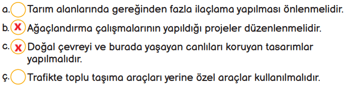 5. Doğal çevrenin korunması için araştırma yapan Mustafa, hangi çözüm önerilerinde bulunmuş olabilir? İşaretleyiniz.