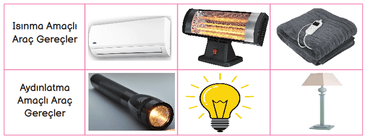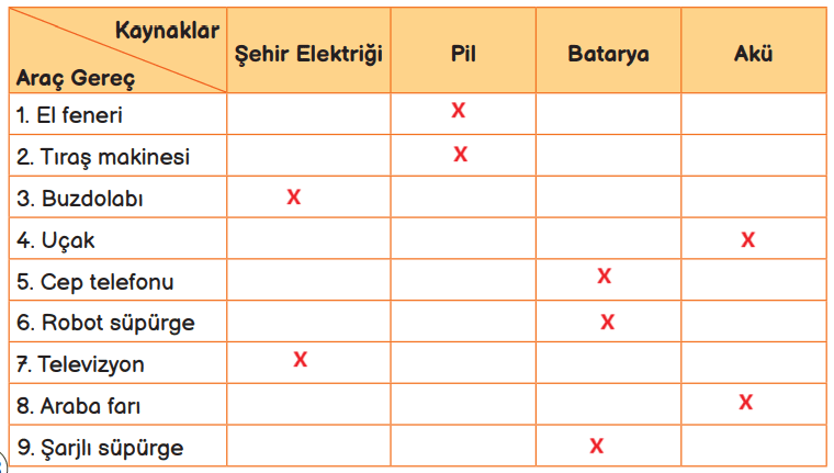 3. Tablodaki elektrikli araç gereçlerin kaynağını işaretleyiniz.