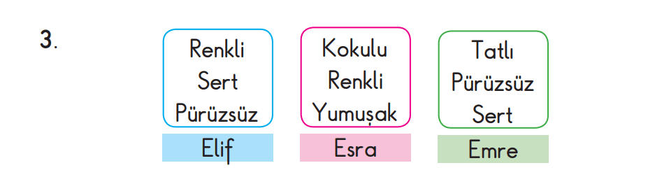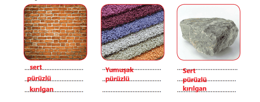 İncelediğiniz maddeler içinde birden fazla özelliği (yumuşak, pürüzlü vb.) olan var mı? Varsa bunlar hangileridir? Söyleyiniz.