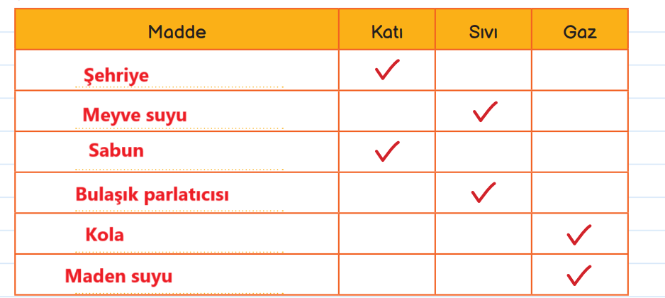 Cevap: 3 guruba ayırdım. Katı, sıvı ve gaz.