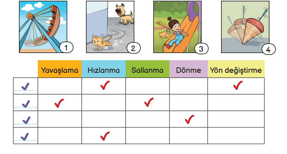 4. Hareketli veya hareketsiz cisimlere kuvvet uygulandığında aşağıda verilen durumlardan hangileri oluşabilir? İşaretleyerek gösteriniz.