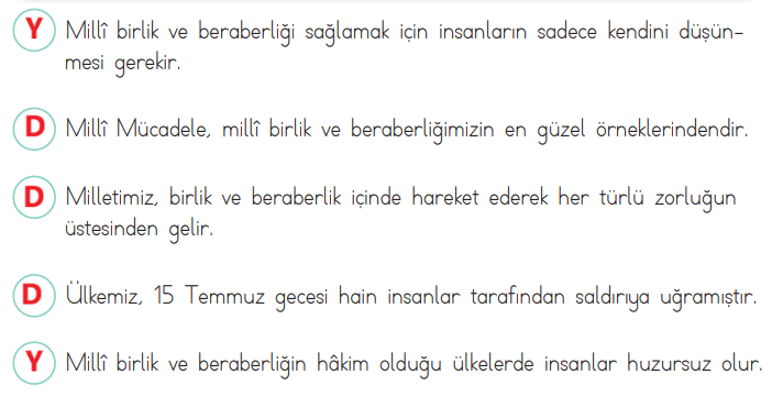 Cevap: Milli birlik ve beraberlik, ülkemizde huzurlu ve güvenli yaşam sürdürmemizi sağlar. Ahlaki ve manevi değerler de güçlenir.