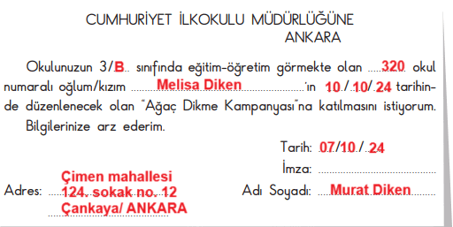 3. Okulunuzla ilgili isteğinizi belirtmek için okul idaresine vermek üzere aşağıya bir dilekçe yazınız.