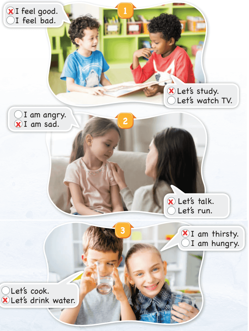 Çeviri: Fotoğraflara bakın. Bir onay işareti ( ) koyun ve söyleyin.
