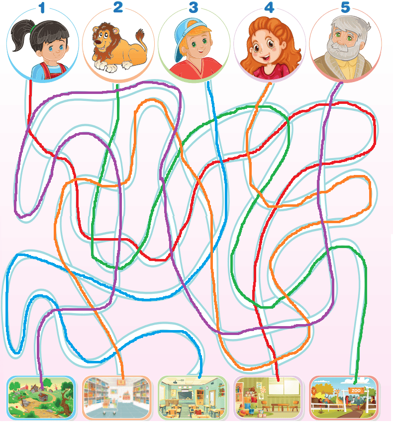 Çeviri: Labirenti yapın. Yerleri bulun ve söyleyin.