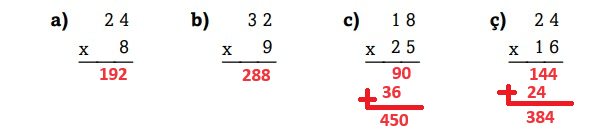 2. Aşağıda verilen çarpma işlemlerini yapınız.