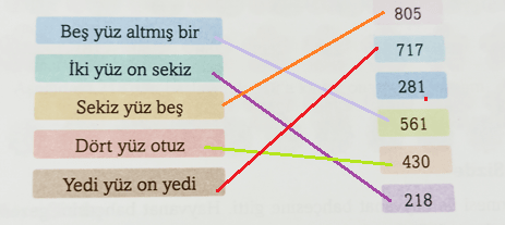 3. Aşağıdaki doğal sayıların okunuşlarını sayılarla eşleştiriniz.