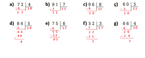 1. Aşağıdaki bölme işlemlerini yapınız.