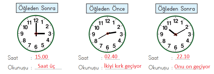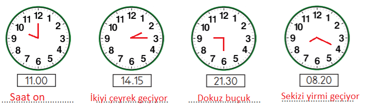 1. Aşağıdaki saatlerin okunuşlarını altlarına yazınız.