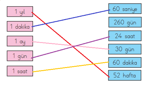 2. Aşağıdaki zaman ölçülerini uygun şekilde eşleştiriniz.