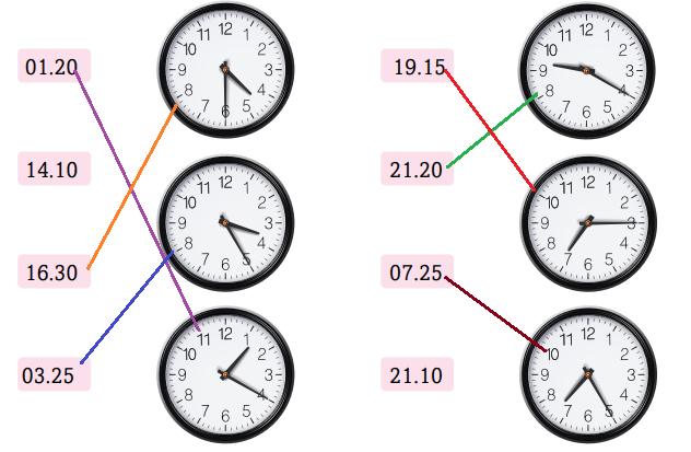 1. Aşağıdaki saatlerin kaçı gösterdiğini altlarına yazınız