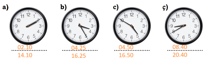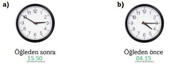 3. Aşağıdaki saatlerin kaçı gösterdiğini noktalı yerlere yazınız.