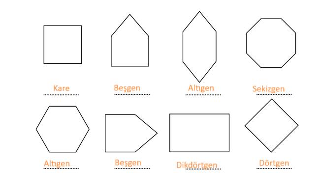 1. Aşağıda verilen şekillerin isimlerini altlarına yazınız.
