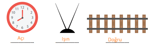 1. Aşağıdaki modellerin altına doğru, ışın veya açı yazınız.