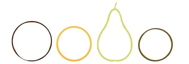 1. Portakal, limon, armut ve kiviyi ortadan ikiye bölünüz. Oluşan parçaları, kesik yüzeyi alta gelecek şekilde kâğıt üzerine koyunuz. Kesik yüzeylerinin çevrelerini örnekteki gibi çiziniz