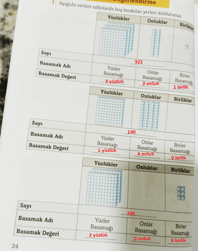 3.Sınıf Matematik Ders Kitabı Ekoyay Yayıncılık 24-25. Sayfa Cevapları Basamak Değeri
