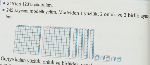 Cevap: 1 yüzlük 2 onluk ve 2 birlik kalmıştır.