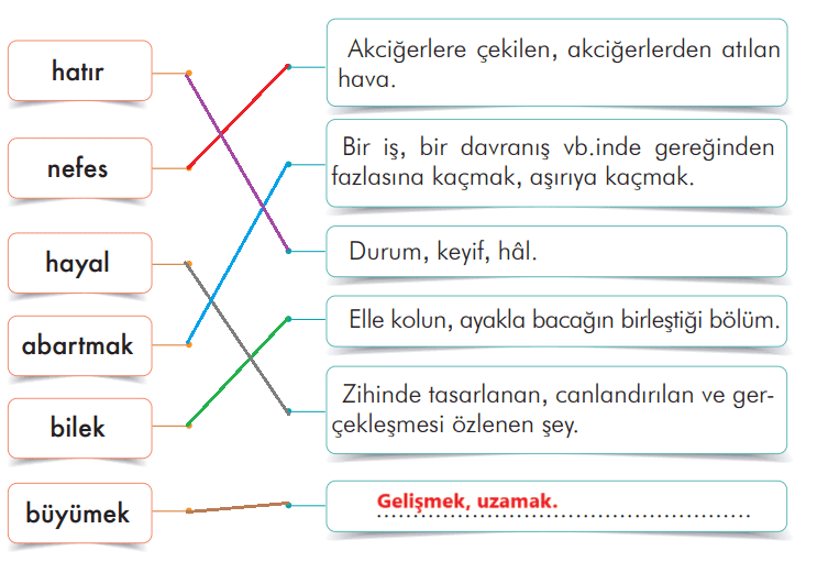 a. Şiirde geçen aşağıdaki kelimeleri anlamlarıyla eşleştiriniz. Eşleştiremediğiniz kelimenin anlamını sözlükten bulup noktalı yerlere yazınız.