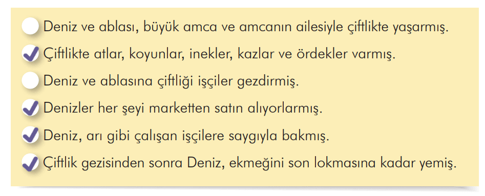 Metnin konusu: Deniz ve ablasının çiftlik gezisi anlatılıyor.