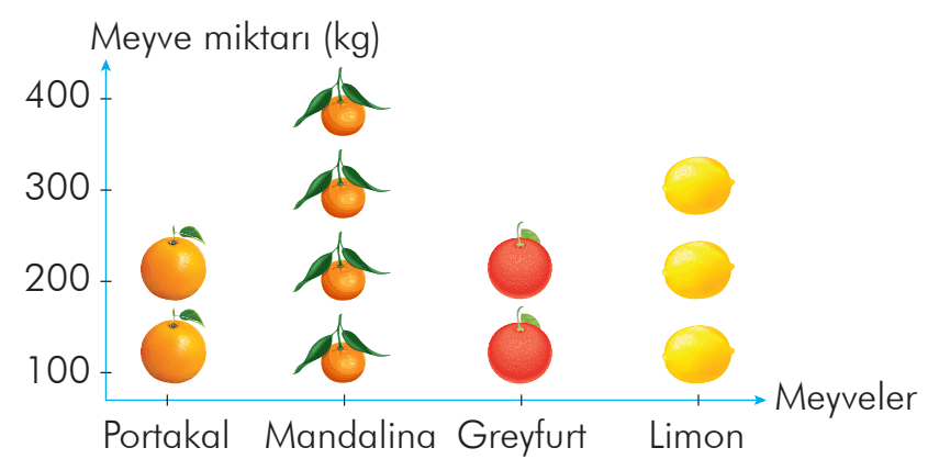 3. Elde edilen portakal ve greyfurtun toplam miktarı, hangi meyvenin miktarına eşittir? …………..Mandalina…………………
