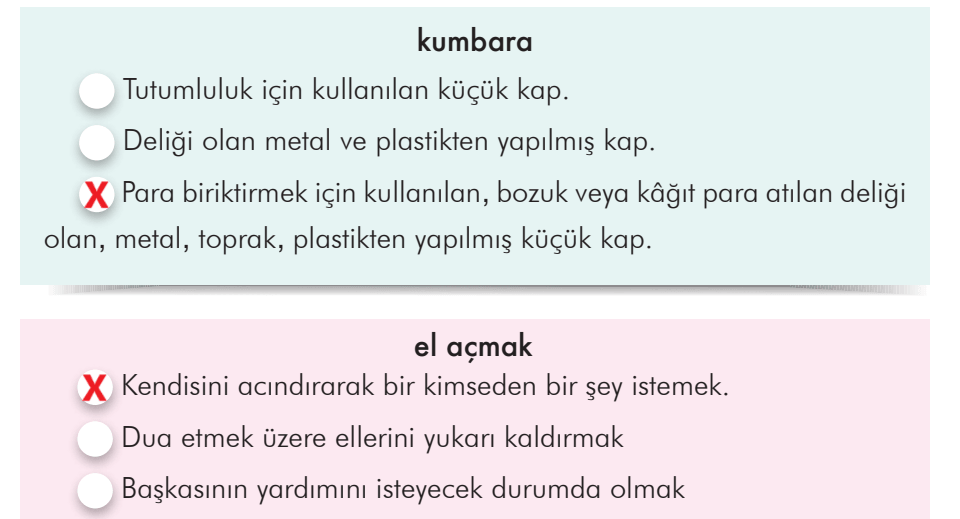 b. Aşağıdaki kelime ve kelime grubunun metindeki anlamlarını işaretleyiniz.
