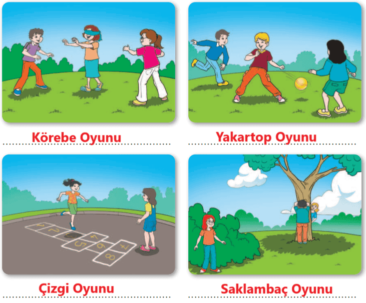 a. Aşağıdaki görsellerin hangi çocuk oyunlarına ait olduğunu altlarına yazınız.