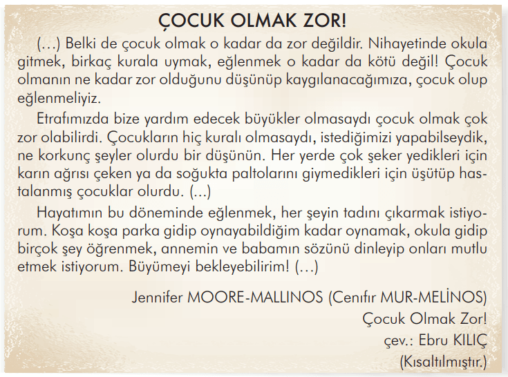 2. Yazara göre çocuk olmanın ne kadar zor olduğunu düşüneceğimize