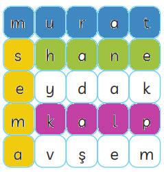 2. Metinde geçen “gökyüzü, yürek, ev ve dilek” sözcüklerinin eş anlamları bulmaca içine yerleştirilmiştir. Verilen sözcüklerin eş anlamlarını bulmacada bularak boyayınız.