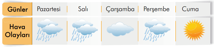 Cevap: Yağmurlu günler pazartesi, salı ve perşembedir.
