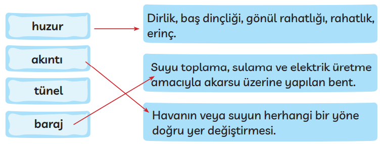 1. Aşağıda sözcükler ve bu sözcüklerin anlamları verilmiştir. Sözcükleri anlamlarıyla eşleştiriniz.