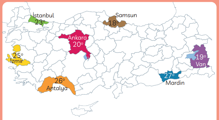 Cevap: Samsun’un sıcaklığı, Ankara’nın sıcaklığından 2 derece azdır.