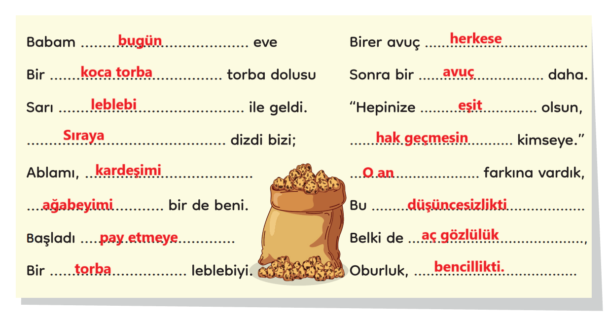 Cevap: Annesiyle babasına leblebi kalmadığı için üzülmüşlerdir.