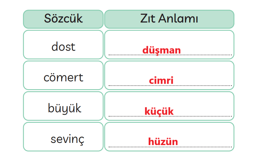 b. Zıt anlamı kullanılan sözcükleri bulup yazınız.