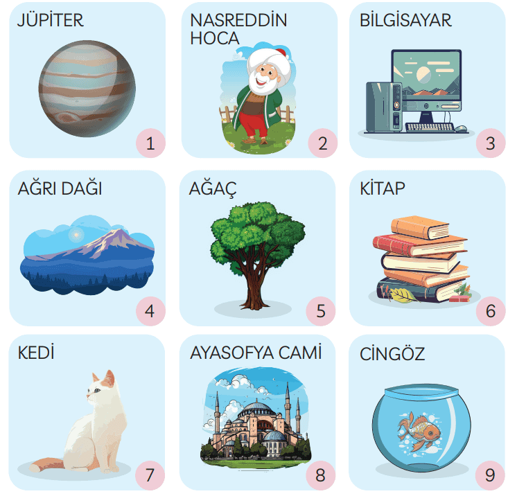 12. Görselleri inceleyiniz. Görsellerdeki numaraları kutulardaki yönergelere göre yazınız.