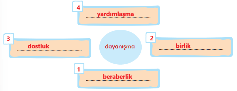 3. Aşağıdaki sözcüğün çağrıştırdığı sözcükleri noktalı yerlere yazınız. Bulduğunuz sözcüklerin alfabetik sıraya göre numaralarını kutulara yazınız.
