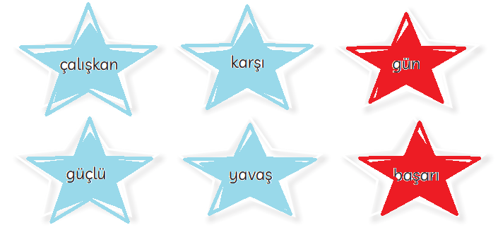 1. Aşağıdaki sözcüklerden eş anlamı olanları maviye, olmayanları kırmızıya boyayınız.