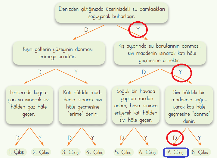 A. Aşağıdaki ifadelerin bazıları doğru, bazıları yanlıştır. Şemadaki bilgilerin doğru ya da yanlış olduğuna karar vererek ilerleyiniz. Ulaştığınız çıkışı işaretleyiniz.