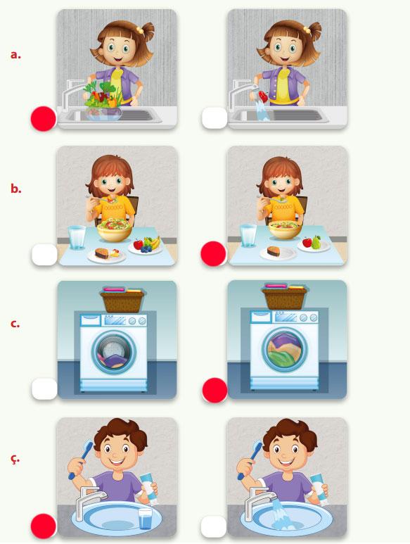 Aşağıda kaynakların kullanımı ile ilgili görseller verilmiştir. Tasarruflu kullanıma örnek olan görsellerin yanındaki kutuyu istediğiniz renkte boyayınız.