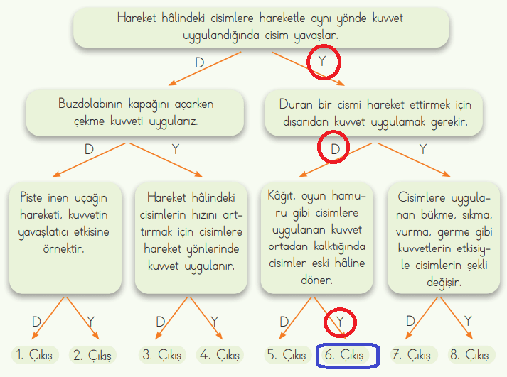 A. Aşağıdaki ifadelerin bazıları doğru, bazıları yanlıştır. Şemadaki bilgilerin doğru ya da yanlış olduğuna karar vererek ilerleyiniz. Ulaştığınız çıkışı işaretleyiniz.
