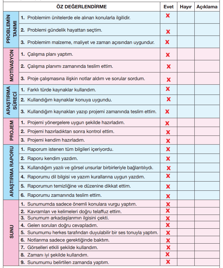 Projeniz, aşağıdaki ölçütler kullanılarak değerlendirilecektir. Bu ölçütleri gerçekleştirip gerçekleştiremediğinizi aşağıdaki formu doldurarak kontrol ediniz.