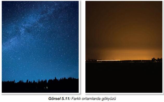 Görsel 5.11’i inceleyiniz. Hangi görseldeki durumda, gökyüzündeki cisimleri görmek ve incelemek daha kolaydır? Cevabınızın nedenlerini açıklayınız.