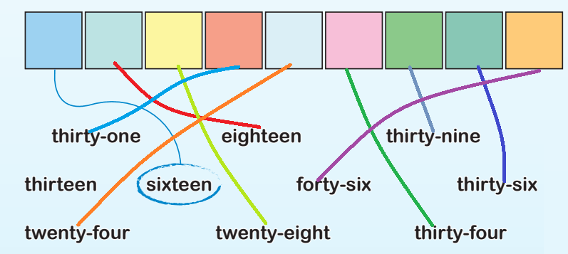 F. Look at part E. Match the colors with the numbers. There is one extra.
