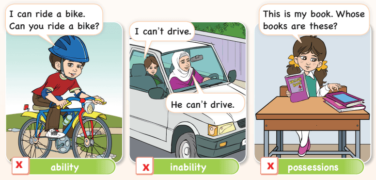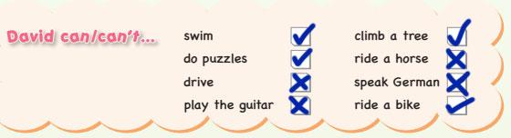 My father can …..ride a motorcycle….., but he can’t ……ride a horse…..