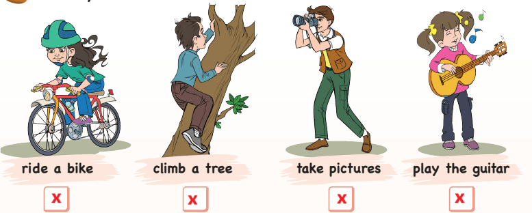 Çeviri: Dinleyin ve bir onay işareti veya çarpı işareti koyun. Sonra işaret edip söyleyin.