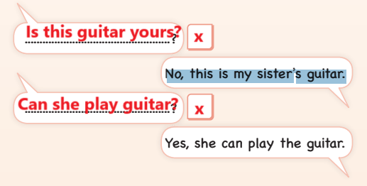My superhero can’t drive a car or play the guitar. (Süper kahramanım araba süremez, gitar çalamaz.)